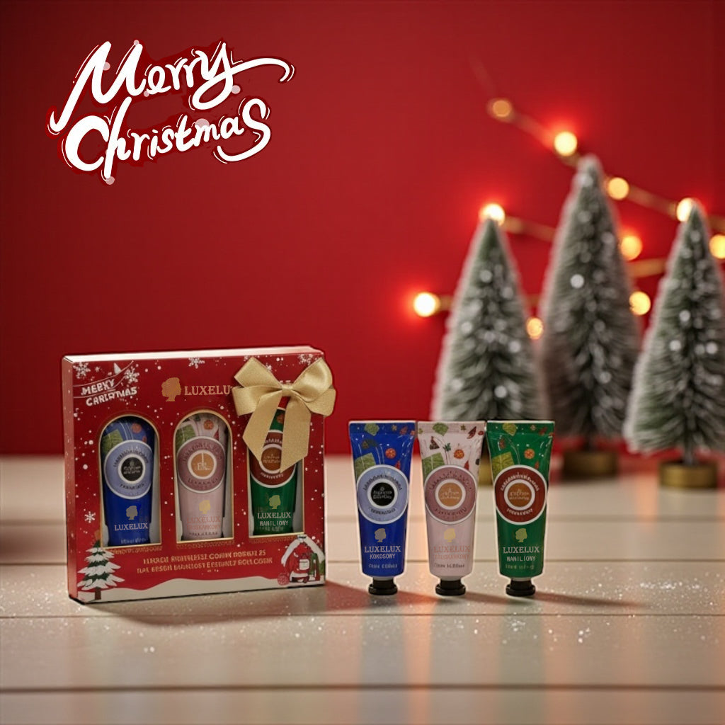 Zanurz się w świątecznym nastroju z limitowanym zestawem kremów do rąk LUXELUX.